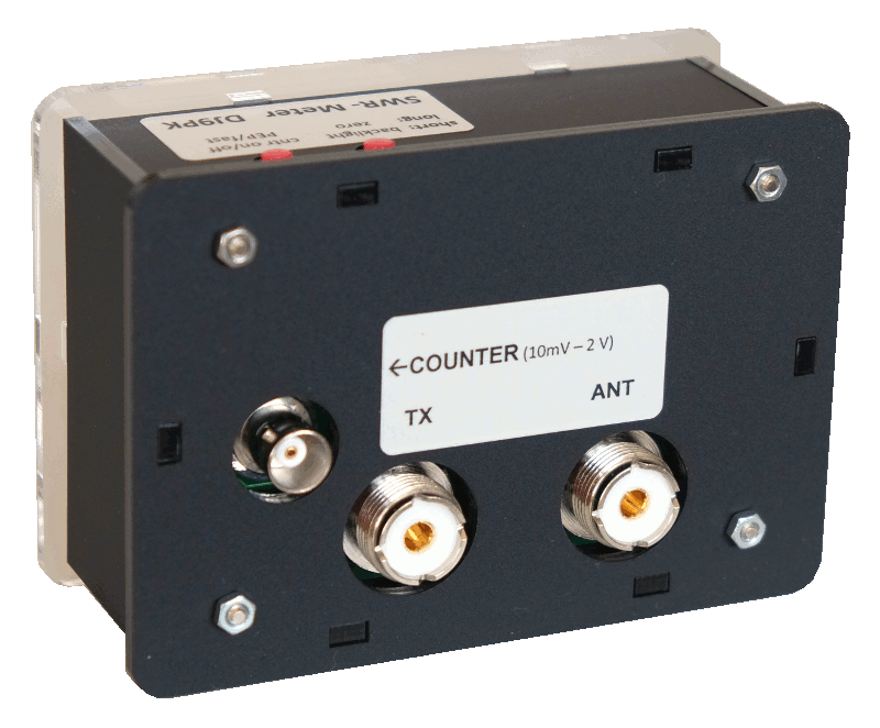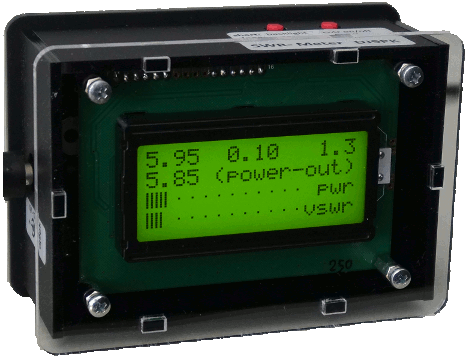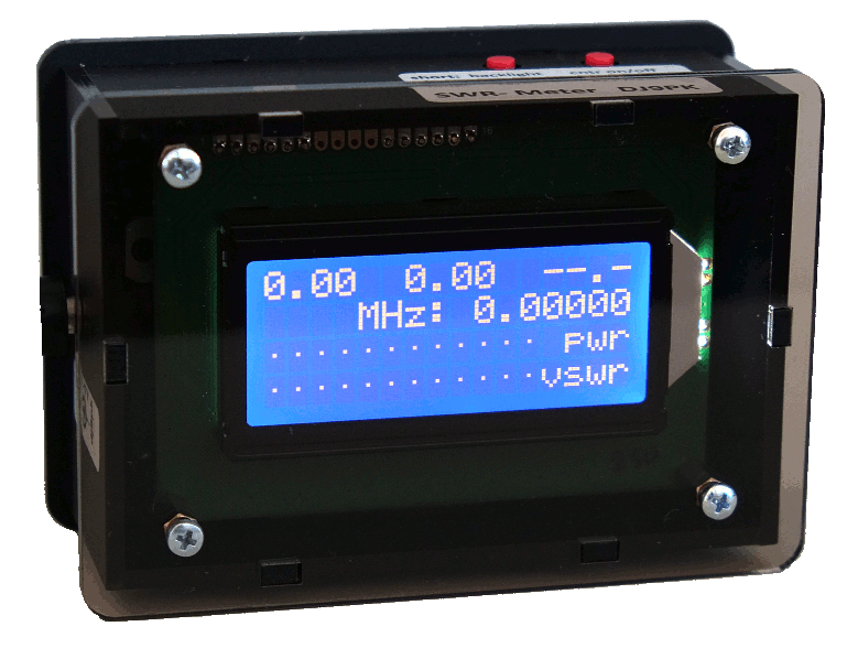 SWR-Meter mit 4-zeiligem Display (blau oder grün) im Plexiglas Gehäuse.